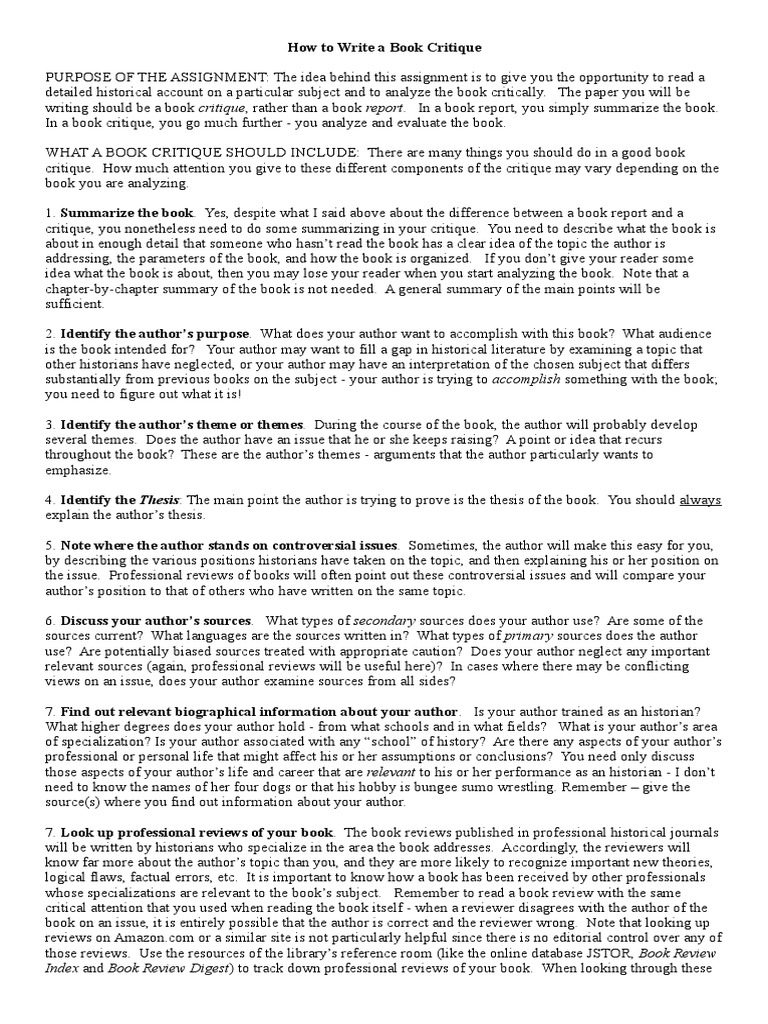 Book Critique Example Of Critique Essay / How To Write An Article Critique Example Apa At Kingessays C : A standard article critique consists of four parts:. When assigned to write a critique essay, you need to analyze a book (or an article) rather than support every argument of your critique with examples. Before you start writing a book critique, you should read the novel you are writing the critique about. Provide a quote as evidence and explain why it does not. In terms of placing this example into an essay, i might argue in different paragraphs, first upon the how do you critique? You should first get an interesting book to based there are several things to consider when constructing a book critique.