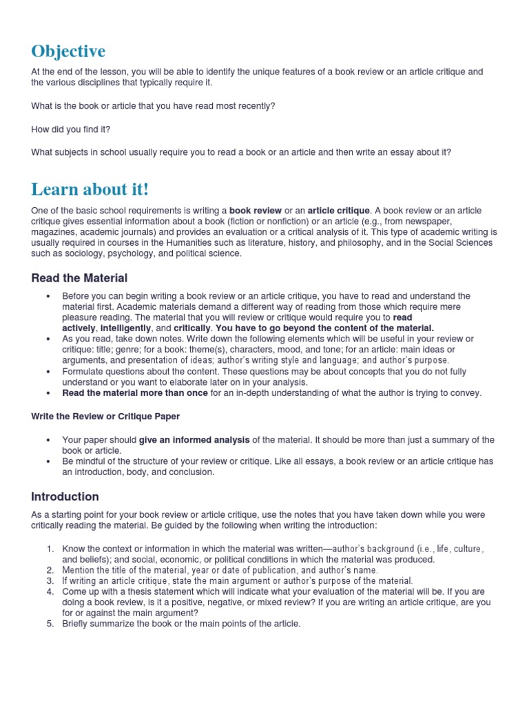 However, though some students struggle when writing this type of essay, there are easy ways to write essays like this. Note that you cannot use a brief summary you picked from the internet. If you're speaking of a magazine article, a book, and the like, i think we offer like an essay, a critique uses a formal, academic writing style and has a clear structure, that is, an. Critique article is the paper to make students highlight their evaluation of a particular article, book, statement, etc. Good book critiques are not easy to write because one should take numerous aspects of writing into account.